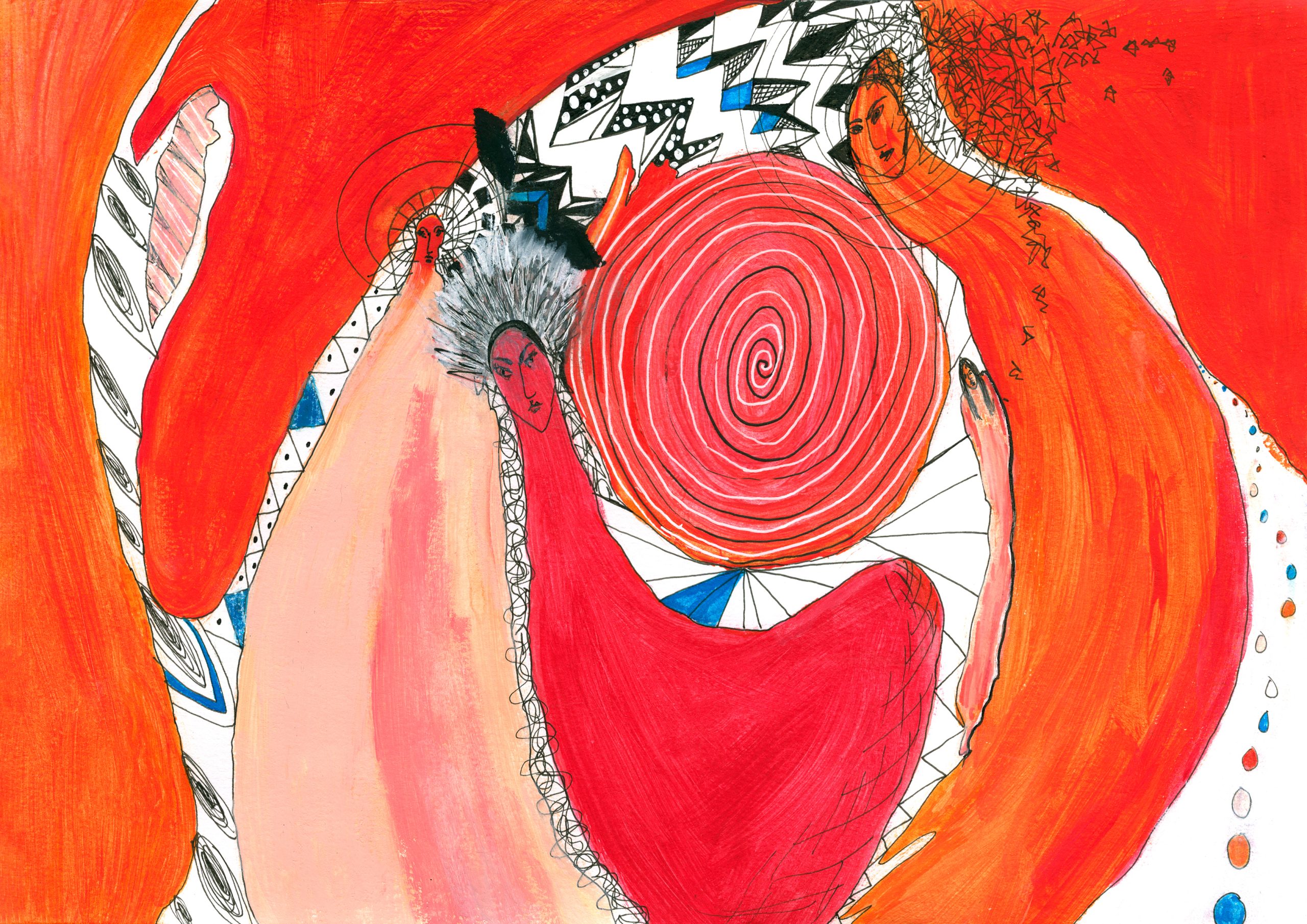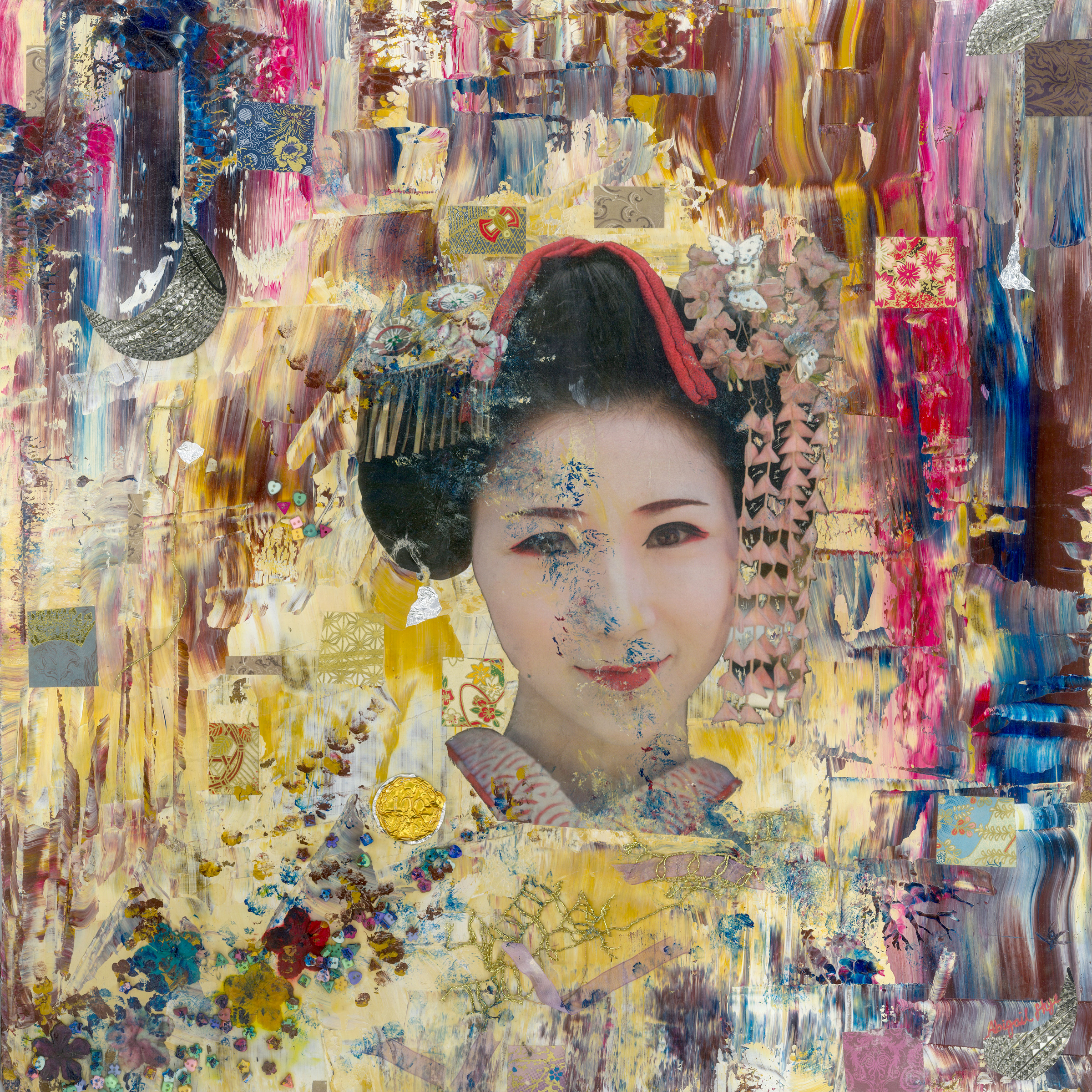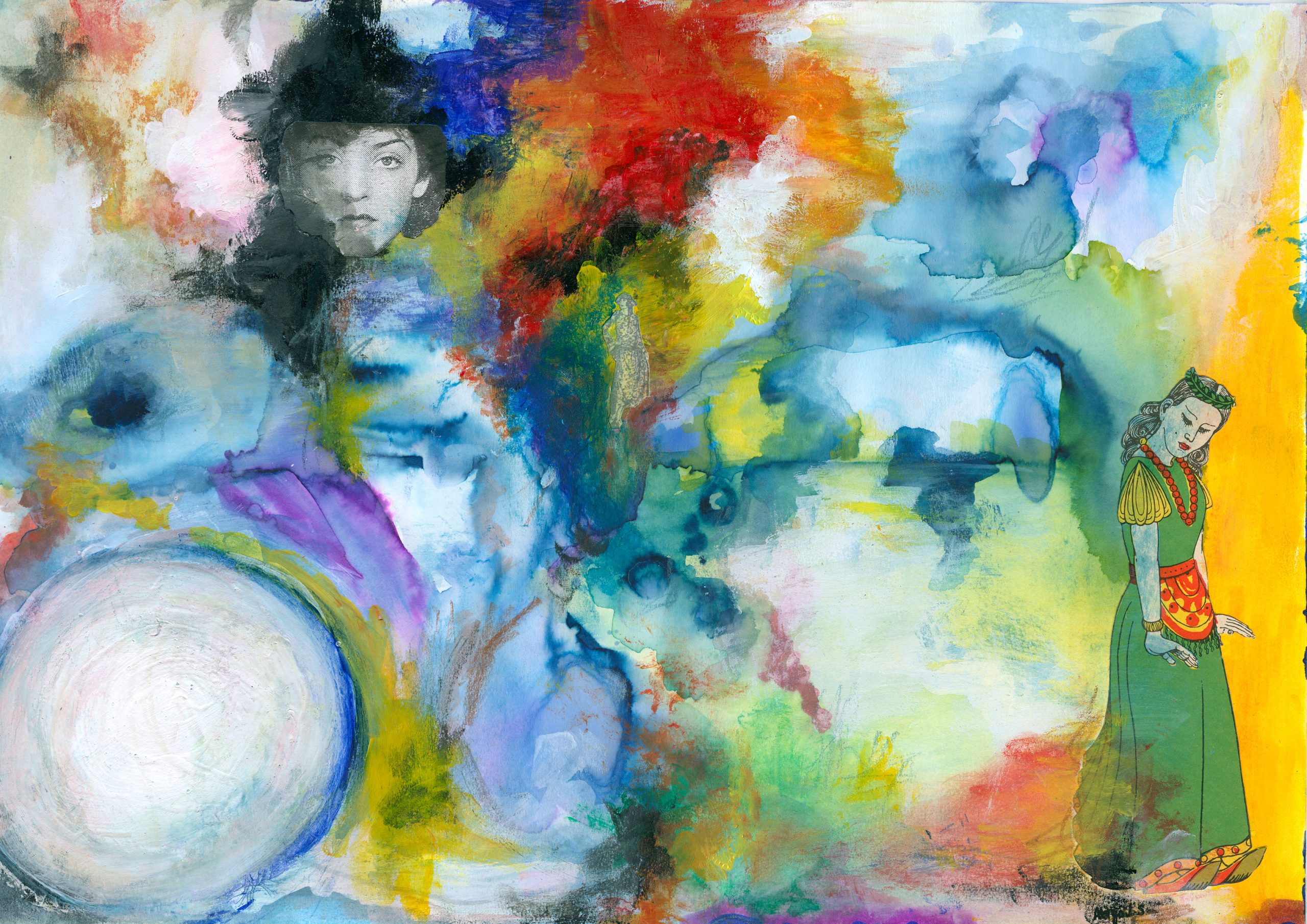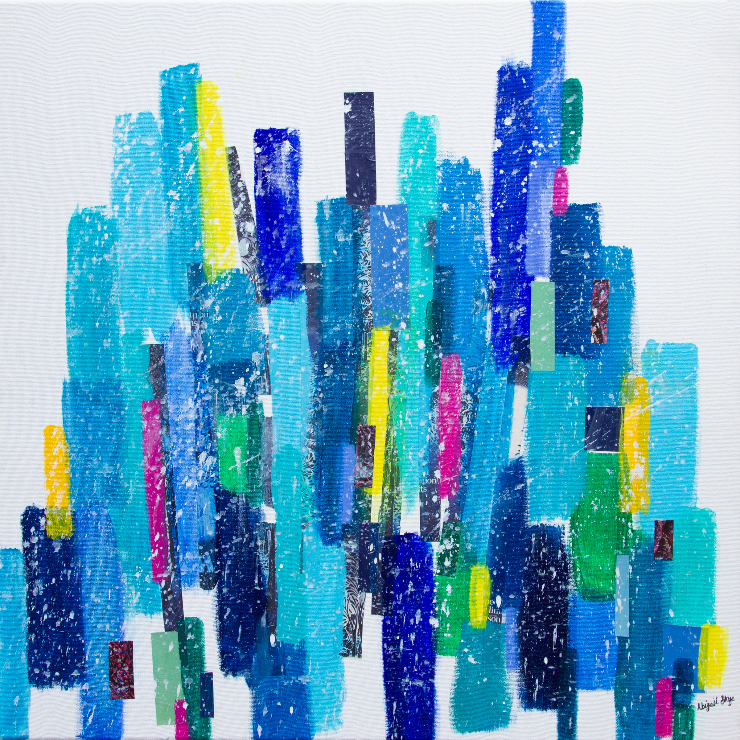 I work across canvas, paper, and art journals, using a wide range of materials and techniques. I also have a background in acting and facilitation, which continues to influence how I approach storytelling through image, texture, and movement. When I’m not in the studio, I recharge by spending time in nature, unwinding with my boys and our pet cat, playing music, or simply slowing down.